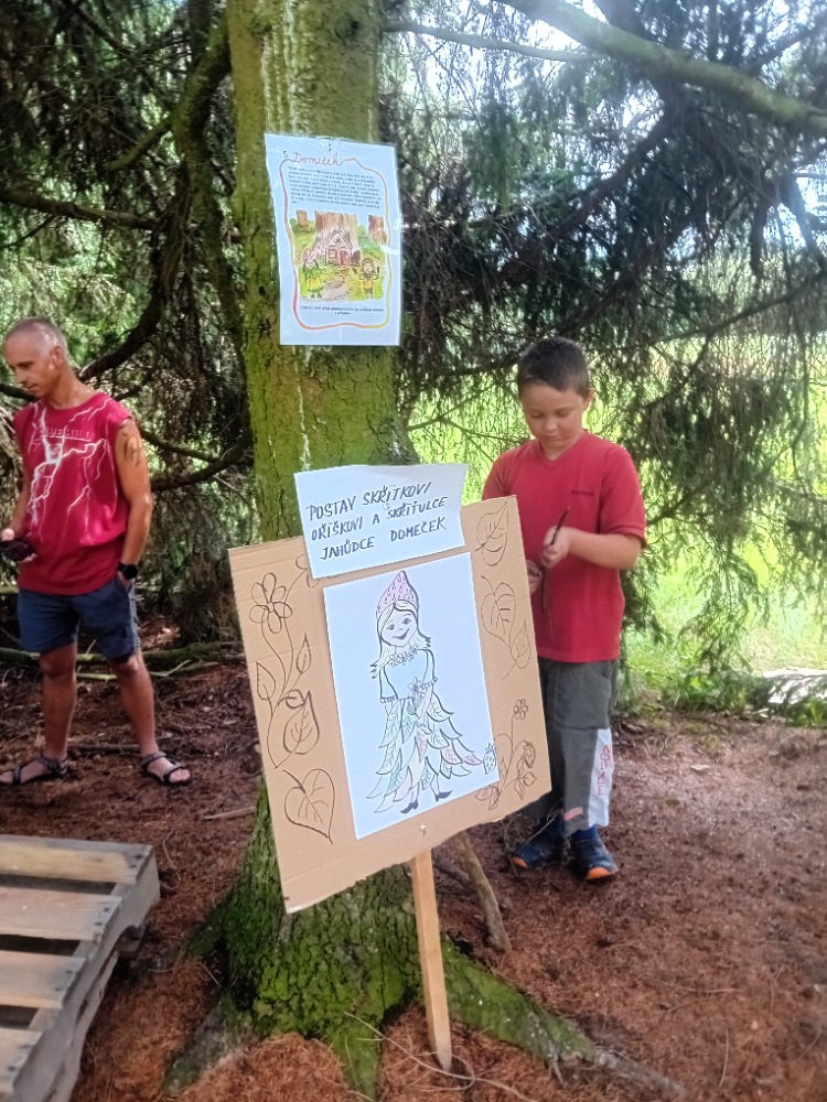 Na děti čekala stezka " Putování za skřítkem Oříškem", na které plnily úkoly, aby skřítka Oříška a skříťulku Jahůdku zachránily.
