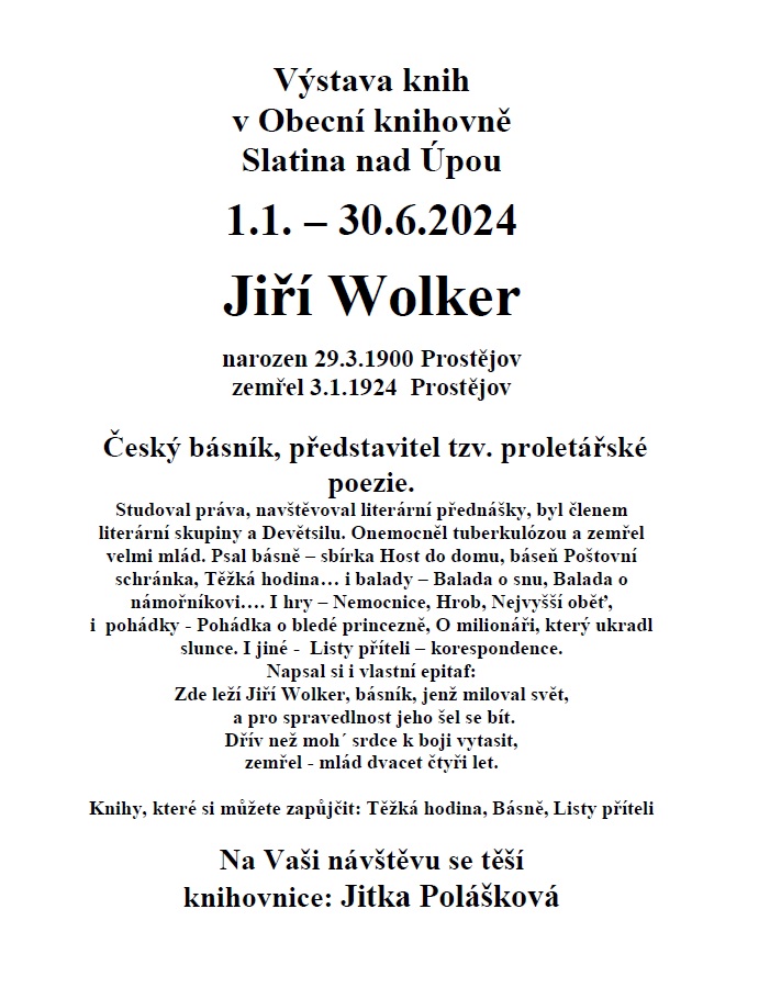 Výstava knih 1.1.-30.6.24 Jiří Wolker