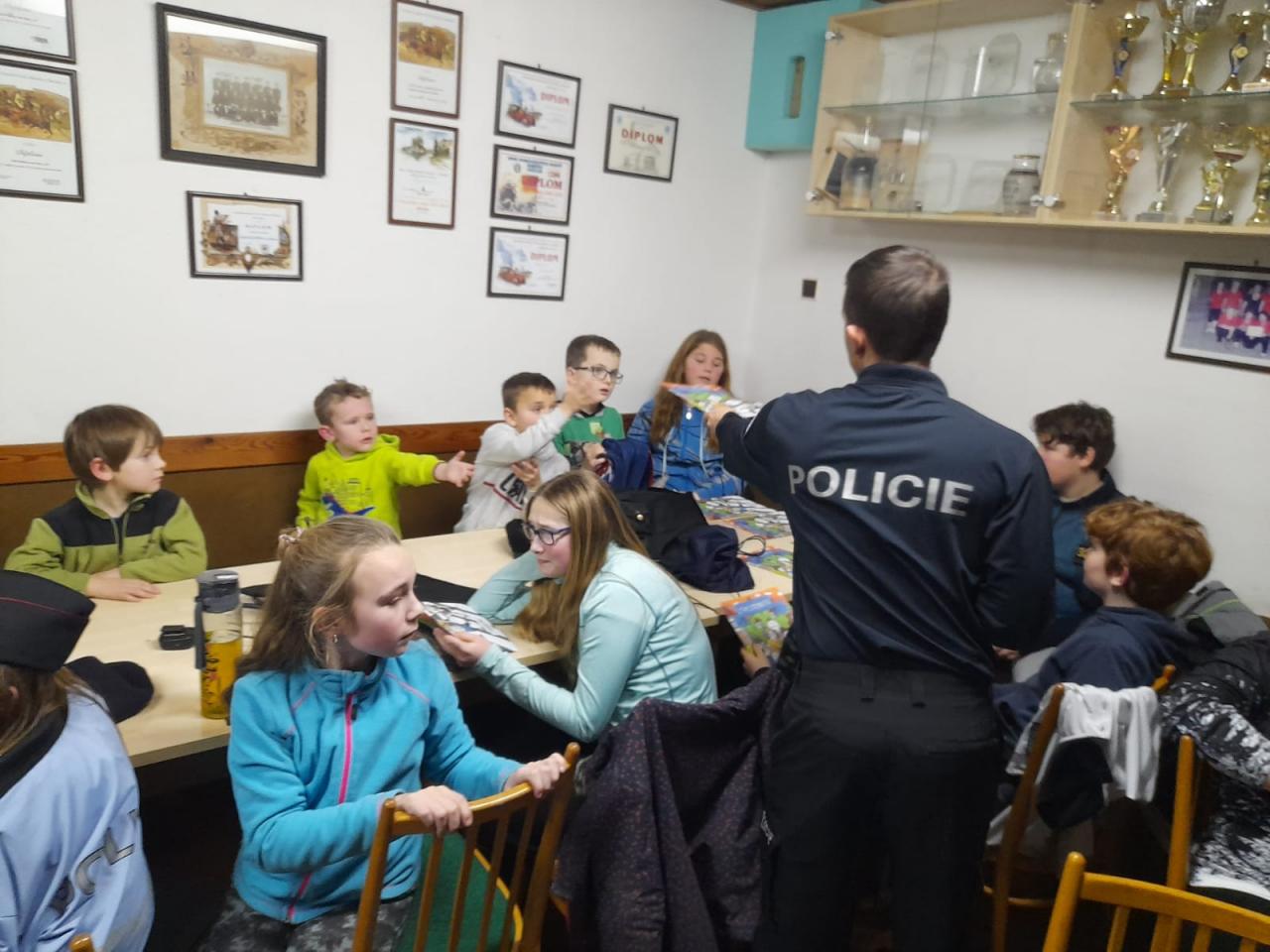 Letošní rok jsme první společnou schůzku začali akčně a pro děti jsme připravili se zástupcem Policie Královéhradeckého kraje panem por. Mgr. Miroslavem Mervartem, preventistou na oddělení tisku a prevence besedu.