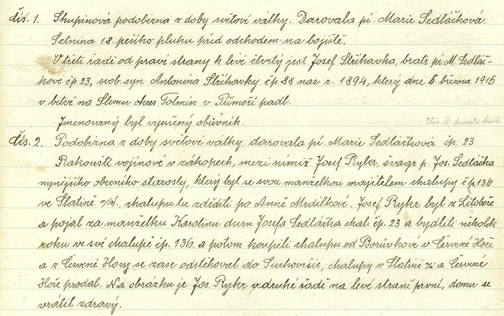 Několik podobenek z obrazové přílohy obecní kroniky vztahující se k I. světové válce: