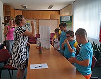 Paní starostka pro chlapce připravila i malý dárek v podobě nástěnné mapy Česka, která byla vydána pro děti u příležitosti 100. výročí vzniku republiky.