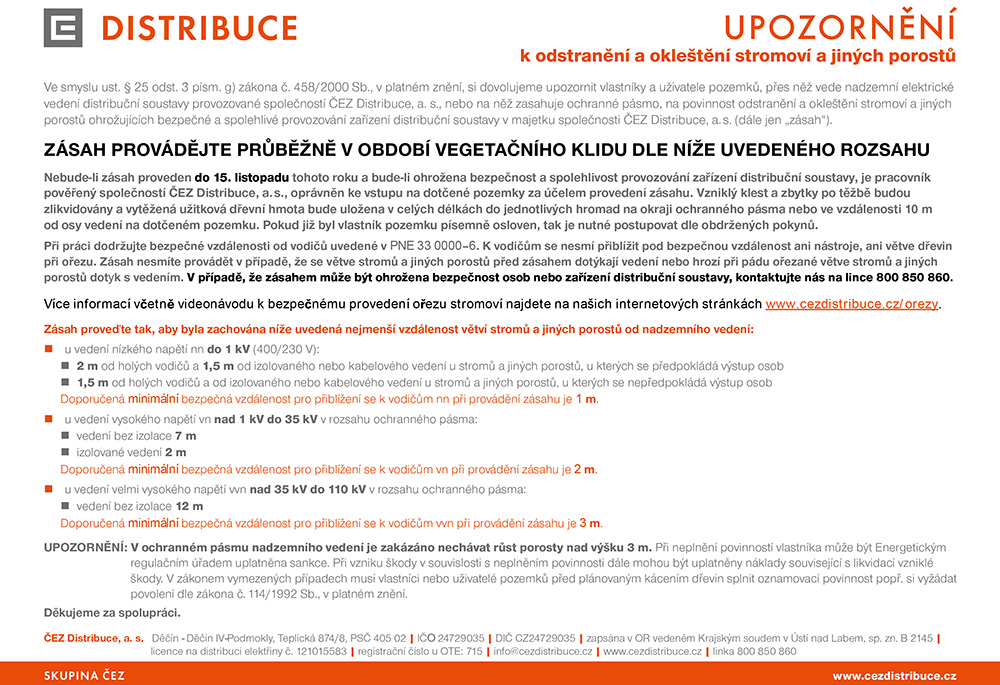 k odstarnění a okleštění stromoví a jiných porostů do 15. listopadu.
