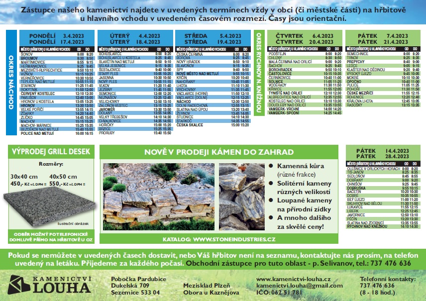 Návštěva zástupce kamenictví na hřbitově ve Slatině nad Úpou ve STŘEDU 19.4.2023 13:20-13:40