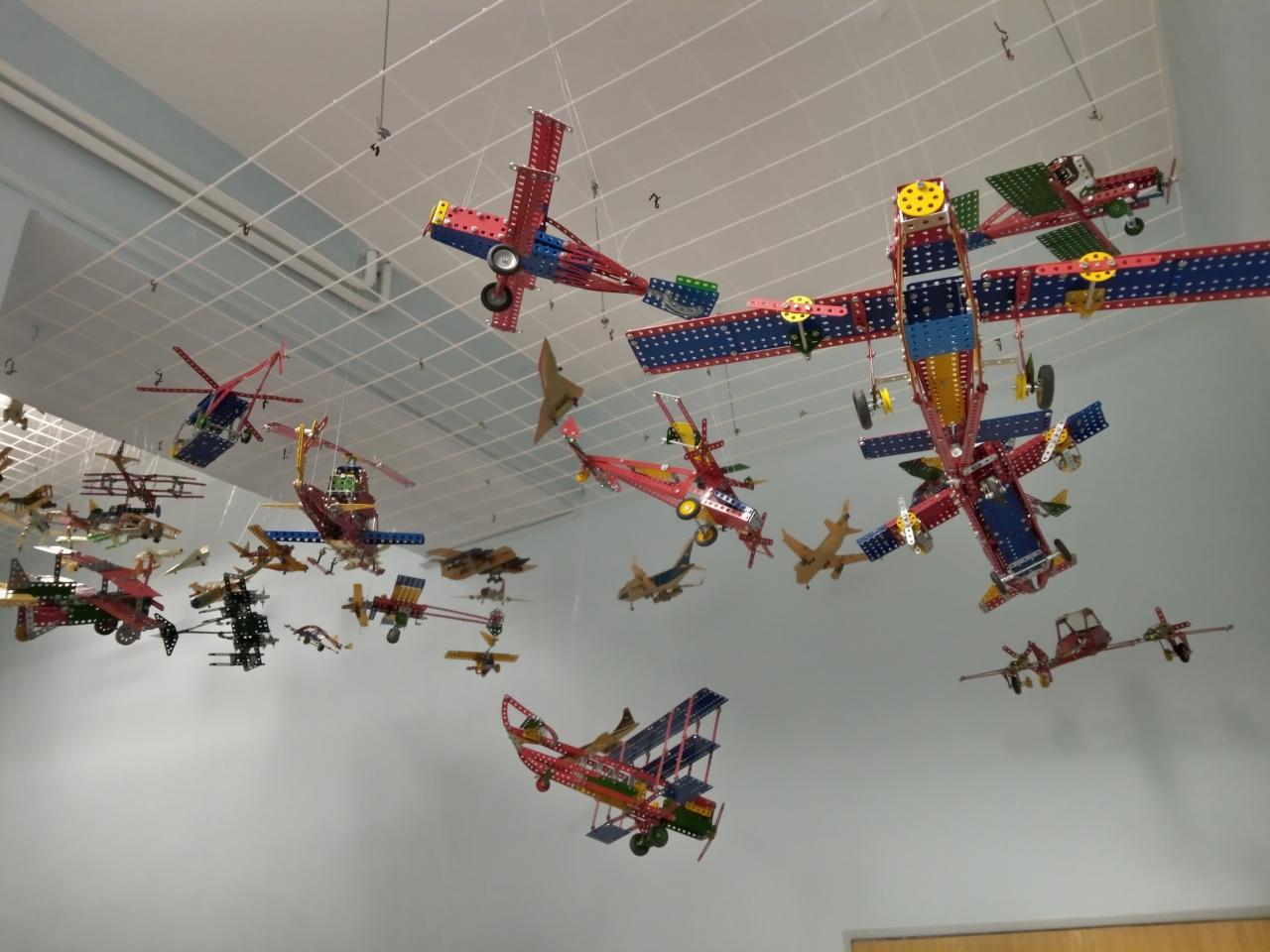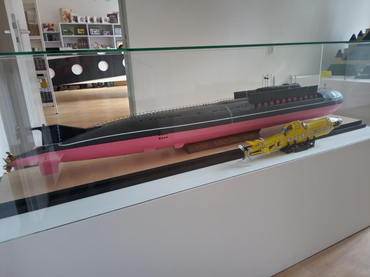 Vstup do světa kovových a papírových modelů nenechá nikoho na pochybách, co uvidí dál. V předsálí, v první místnosti před recepcí, čekají na návštěvníka sice pouze čtyři, ale unikátní modely. Ty reprezentují možnosti a „vztah“ papíru a železa. První, co člověk, který vstupuje do muzea uvidí, je impozantní papírový model ponorky Kursk doplněný o nejnovější model ze stavebnice Merkur – Žlutou ponorku. Zda byla inspirací nesmrtelná píseň legendárních Brouků nebo třeba svět Julese Verna už musí posoudit každý sám. A ještě monumentálnější je merkurový model hradu Karlštejn, který je doplněn o jeho papírového bratříčka. „Návštěvník hned na začátku uvidí, co muzea nabízí a může sám posoudit, jak se lze s daným tématem popasovat. Modely z Merkuru působí masivně, oproti tomu papír je jemnější. Ale obojí je krásné. Instalace v předsálí není ale souboj mezi nimi, protože krása s krásou prostě nemůže bojovat. Spíše ukazujeme, že krása má mnoho podob,“ doplňuje ideu expozice Pavel Frydrych. Tuhle myšlenku dokládá i expozice, kde se na několika místech prolínají modely z papíru a kovu. Třeba hned na chodbě, spojující obě muzea, se nad hlavami návštěvníků vznáší letka letadel z merkuru i papíru.
