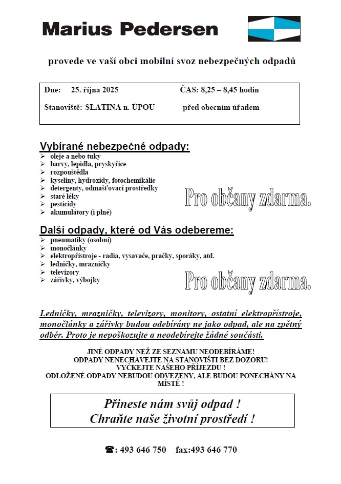 25. října 2025 8:25-8:45 před obecním úřadem Slatina nad Úpou